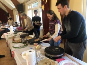 Notre repas paroissial 2025 s’est tenu dans la salle municipale d’Orphin. La veille, quelques bénévoles avaient monté les tables, dressé le couvert et installé la
