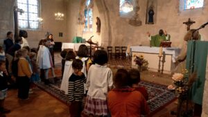 Pour bien commencer l’année scolaire, les enfants étaient invités, en ce dimanche de début septembre, à venir à la messe avec…leurs cartables ! Le Père