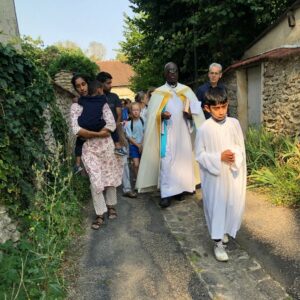 Comme chaque année, nous avons fait une procession dans les rues de Raizeux, en l’honneur de Notre-Dame, au jour anniversaire de son Assomption. Notre Père