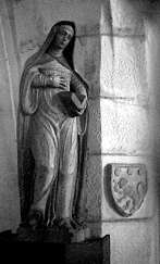 Une statue en bois polychrome du XVIIème siècle, qui représente Sainte Thérèse d’Avila, se trouve à proximité du chœur. On note également, sur un pilier, un blason figurant le lion de Montfort.