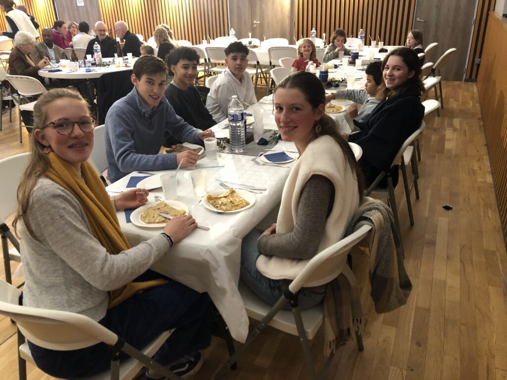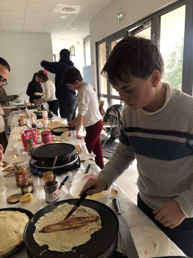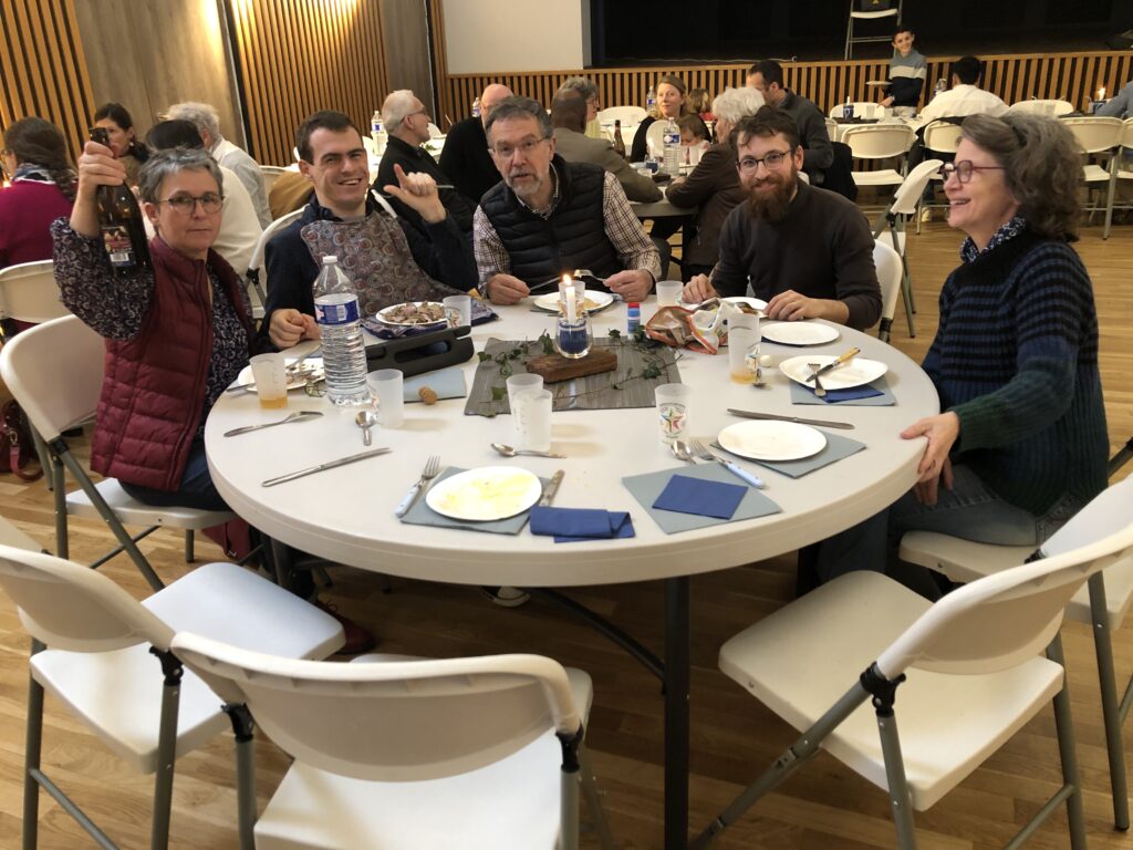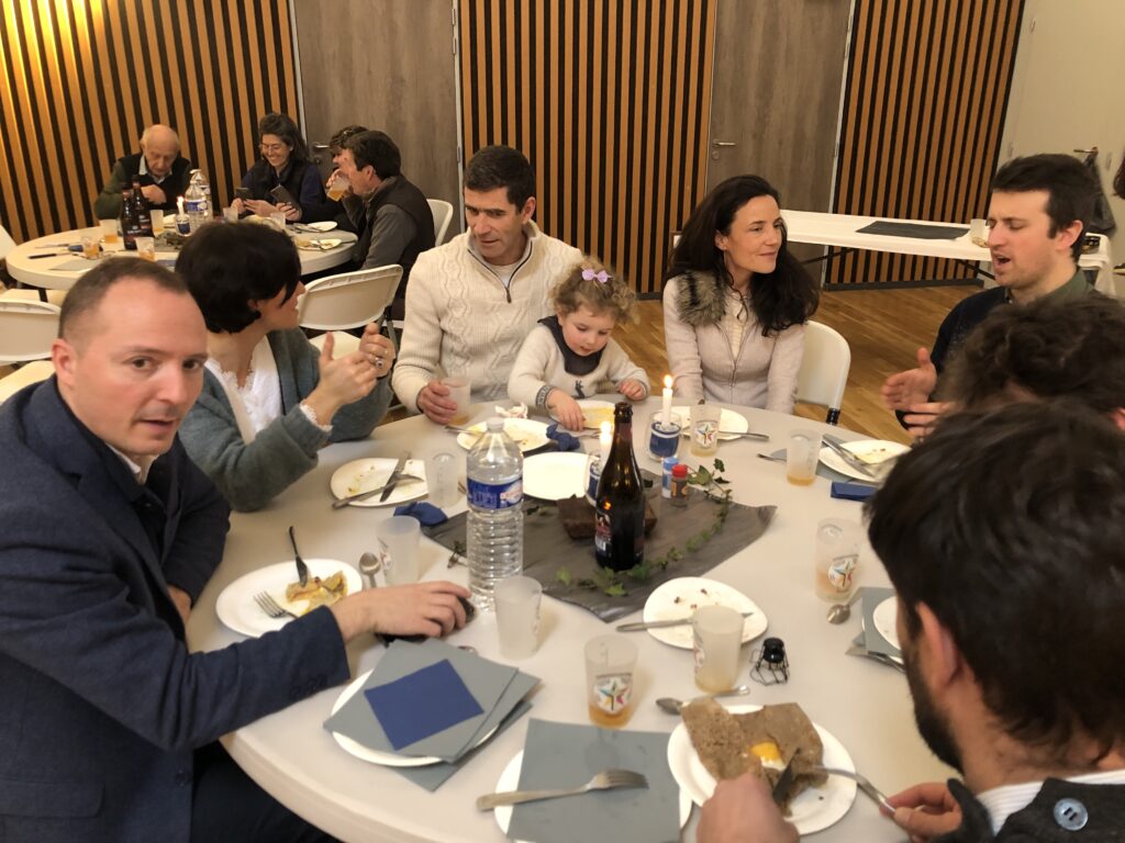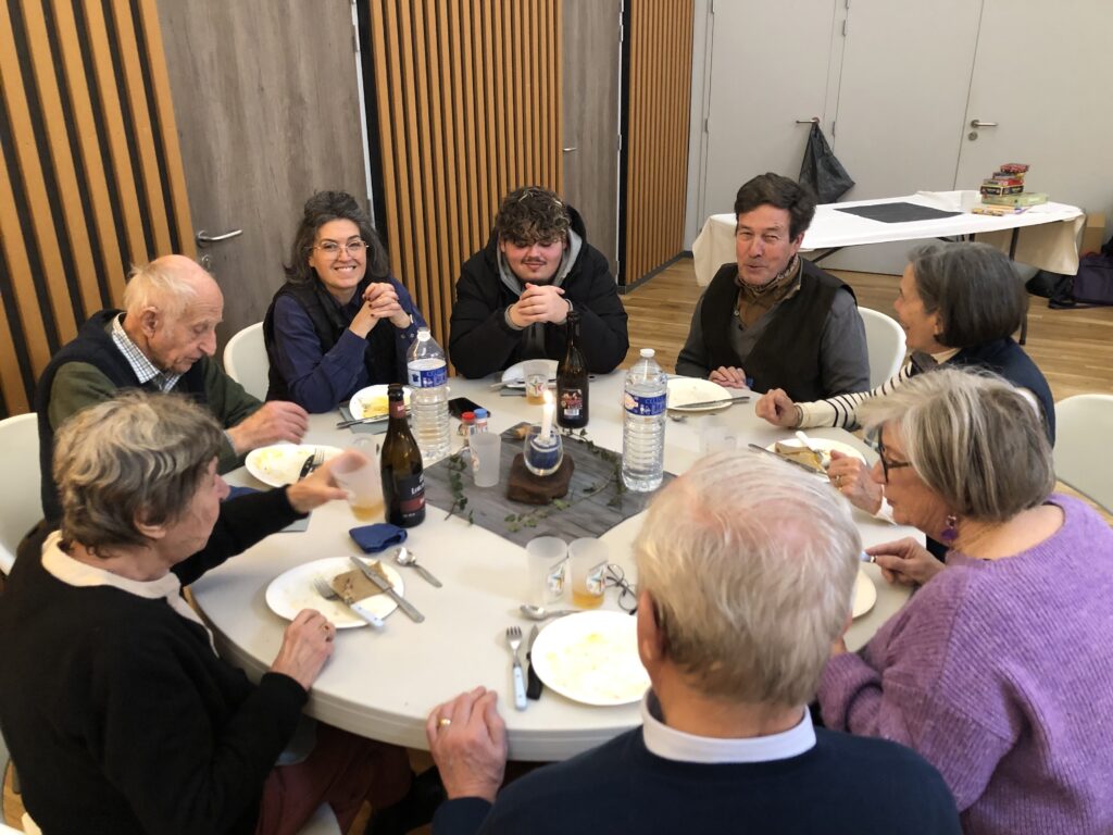 Après le benedicite, tous ont pris place autour des tables pour notre traditionnel repas-crêpes. C’est un moment de partage, de discussions, de retrouvailles ou l’occasion de faire connaissance avec de nouveaux venus.