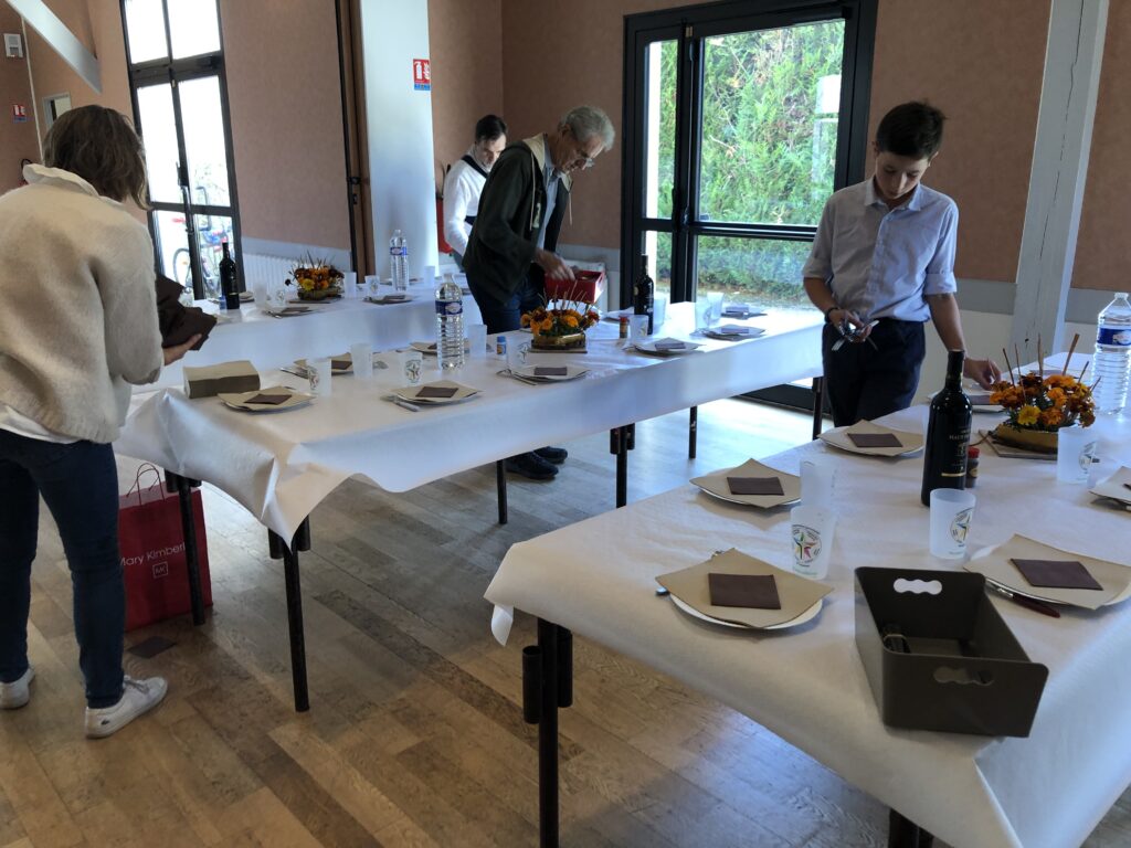 La veille, quelques bénévoles avaient monté les tables, dressé le couvert et installé la décoration concoctée par Marie-Thérèse depuis plusieurs jours !